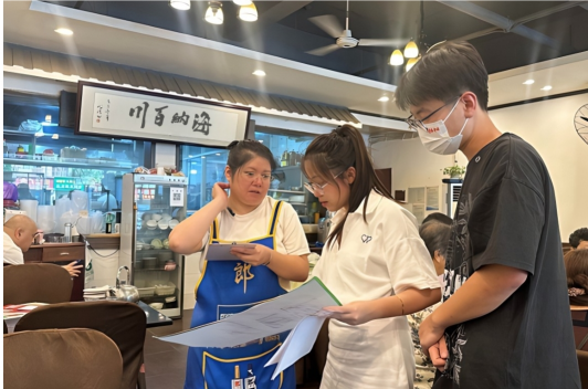 “我已经很努力在复习英语了,但是四级考了两次还是没通过,我真的很着急。”2023级兼职辅导员李佳芮得知学生小严英语学习的困扰后前往学生小严家的餐馆。李佳芮向家长介绍了大学英语四六级的重要性,向小严分享了英语听力、阅读理解的技巧,同时还鼓励小严保持积极的心态,相信自己有能力克服难关。