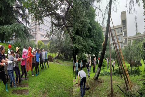 每日巡检绿化,及时对汛期内倾倒的树木进行扶正、加固