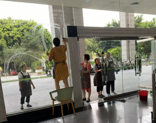 清洁教学楼公共区域窗户