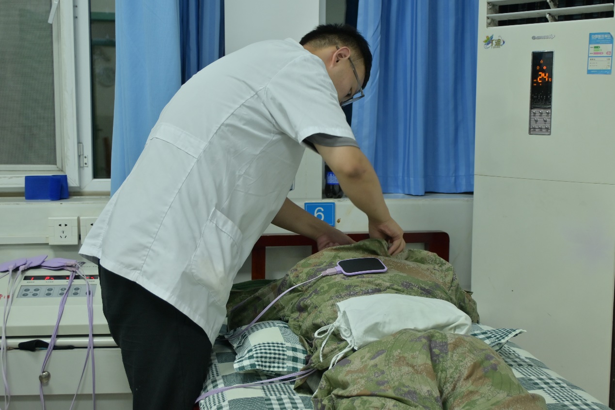 军训间隙,延时服务用心贴心缓解身体疲劳。值得一提的是,今年校医院特别设置了军训期间的延时服务,中医康复科医务人员利用休息时间,开设夜间军训教官专属中医理疗服务,还在9月19日、20日中午组织校园义诊,为新生提供推拿按摩等服务,给出针对性地理疗建议和健康提醒,缓解新生的身体疲劳。