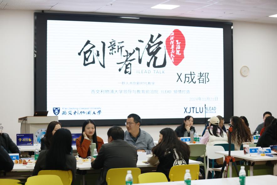 11月21日下午,由西交利物浦大学领导与教育前沿研究院打造的“创新者说×成都”城市本地教学创新社群活动在我校举行。来自四川大学、电子科技大学、成都理工大学、重庆大学等川渝地区17所高校不同学科专业的50多名教师参加,围绕“如何面向未来进行教学创新”这一主题煮茶论道,先后进行了主题分享和圆桌讨论,共叙教学创新中的点点滴滴。教务处副处长朱红钧出席并致辞。土木工程与测绘学院教授,第六届、第七届西浦全国大学教学创新大赛一等奖获得者刘红勇教授主持活动。