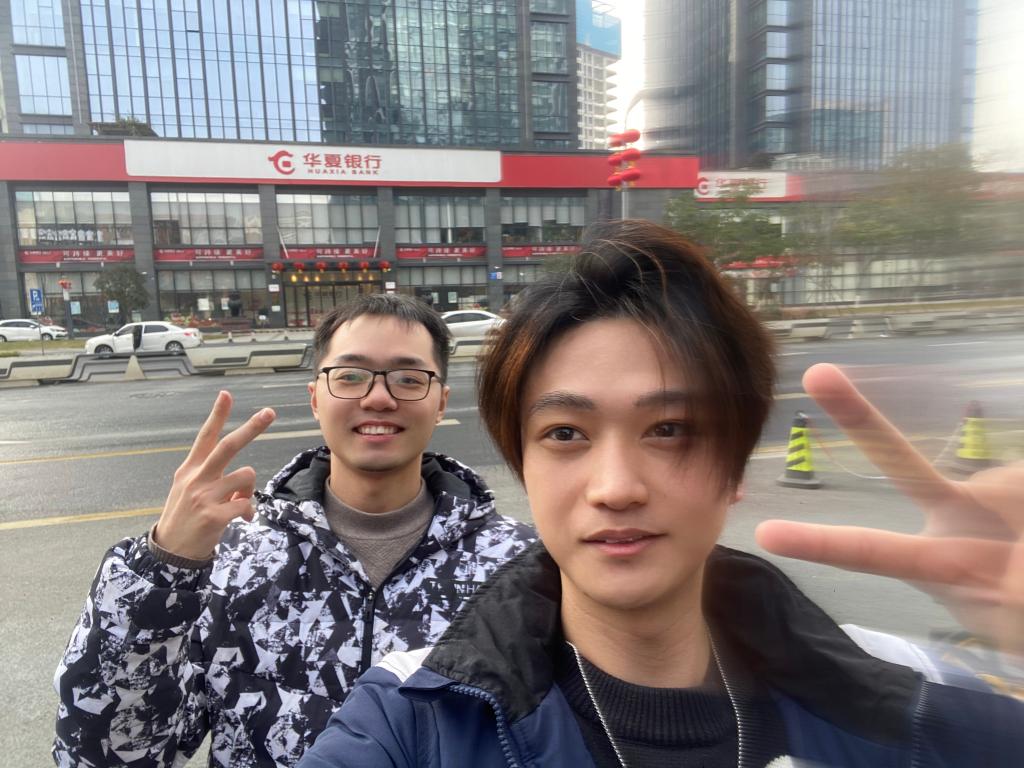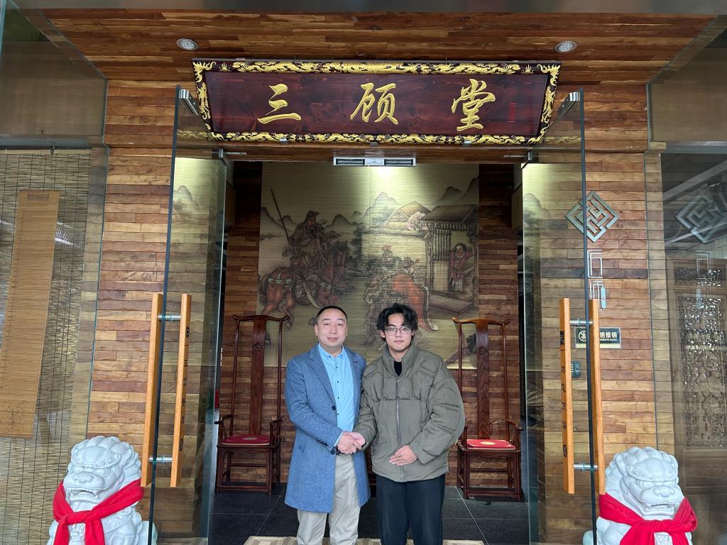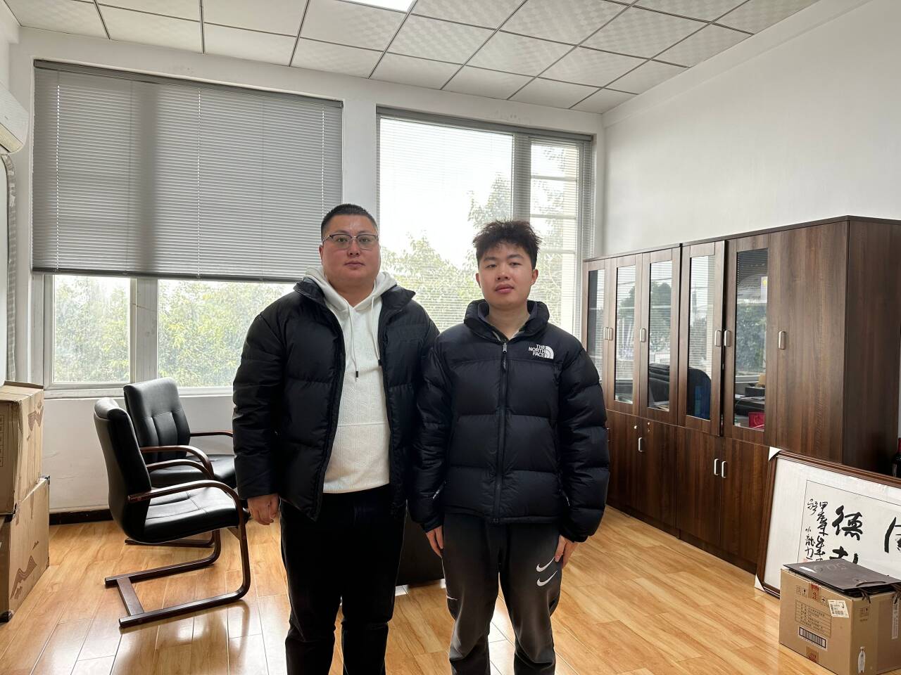 校友陈友根、郝云权与2021级学生廖俊杰合影