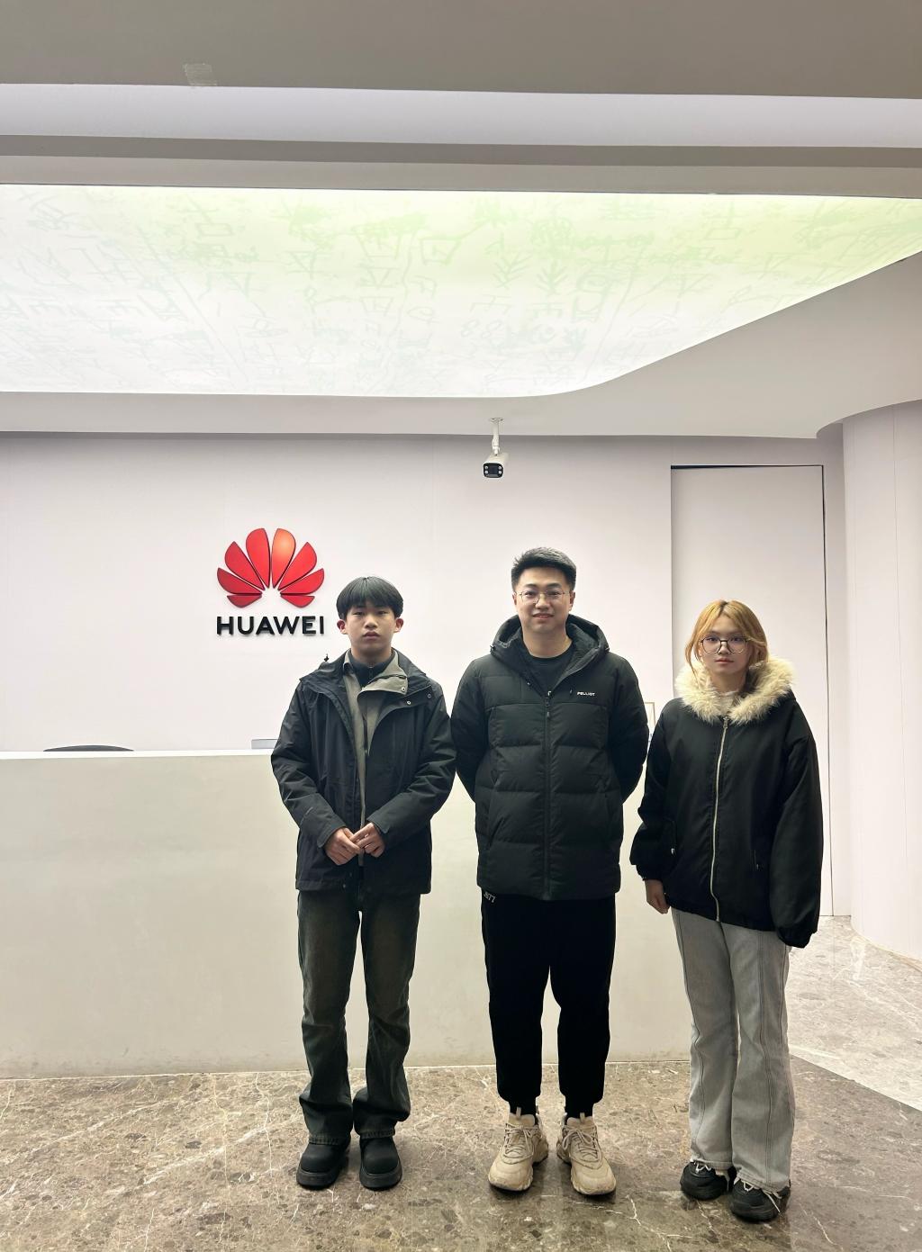 校友梁虹与教师徐东胜、2021级学生魏慈航合影