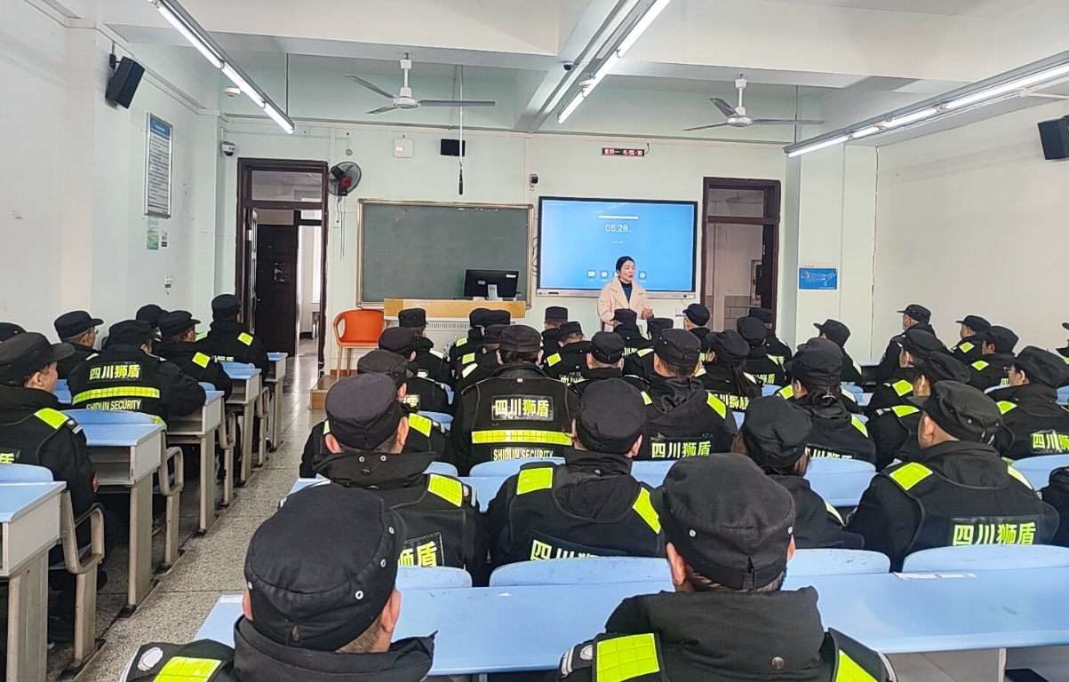 本次寒假大练兵活动聚焦校园安保工作实际,重点围绕岗位基本技能、勤务礼仪、防卫技能、消防技能、突发事件应急处置等方面进行系统性培训。在理论培训中,相关专家通过现场讲解、视频播放、案例剖析等方式,对安保岗位要求、职业技能、文明礼仪等相关知识进行了讲解;实战训练中,特邀新都特巡警大队教官到校为安保人员进行了防暴处突技能实操训练,组织安保人员进行消防水带连接、灭火器实操等消防技能培训,提升快速有效处理突发事件的能力;为检验相关培训效果,活动期间,保卫处还组织了“暴徒”驾车冲撞校门和持刀强闯教学楼的突发事件应急演练,各安保人员按照应急预案迅速响应、协同作战,熟练掌握应对技巧和处置流程,成功排除“险情”。