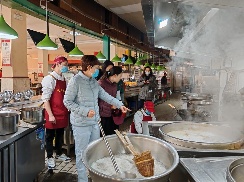 联合检查组分为两个小组,深入学校教工食堂、第一食堂、第二食堂以及校园餐饮服务点等重点区域,通过实地查看、现场抽检、台账核查等方式,对食品原料采购储存、加工操作流程、餐具清洁消毒、从业人员健康管理及环境卫生等环节展开全覆盖检查。