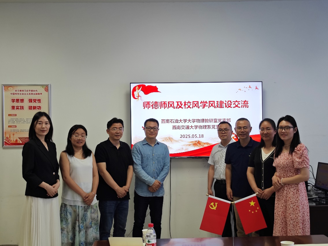 5月18日上午,西南交通大学物理科学与技术学院物理系党支部代表到理学院大学物理教研室党支部围绕师德师风及校风学风建设展开深入交流。活动旨在搭建两校物理学科沟通桥梁,共享建设经验,推动双方党建工作及教育教学工作高质量发展。