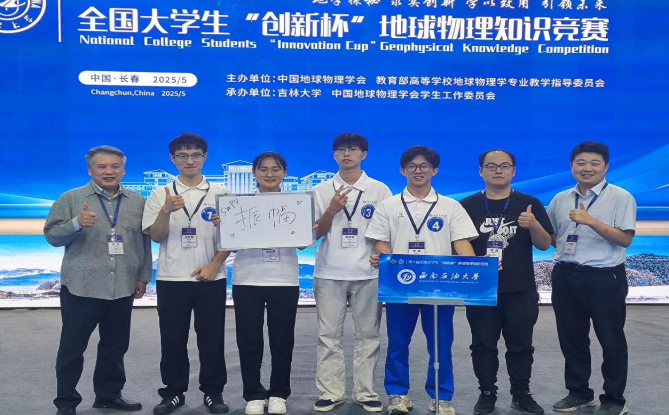 我校地科院尹成教授和王毓玮老师指导的地质资源与地质工程硕士2023级袁诗博、勘查技术与工程2022级杨智谋、李腾和张丽丽4位同学组成的“探秘乾坤”团队经过笔试、团队风采展示、个人必答题、团队必答题、综合论述题等环节荣获地震勘探类竞赛二等奖。