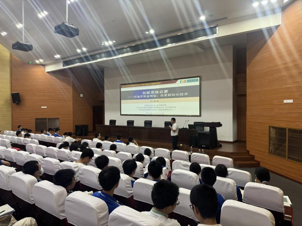 近日,四川省大学生创新创业文化普及基地联合西南石油大学钻头研究所,走进成都市新都一中铭章班,为120名中学生带来了一场题为“石油开采金刚钻:自更新钻头技术”的科普讲座。,以生动的科技故事和鲜活的创新案例,在青少年心中播撒下能源报国的种子。