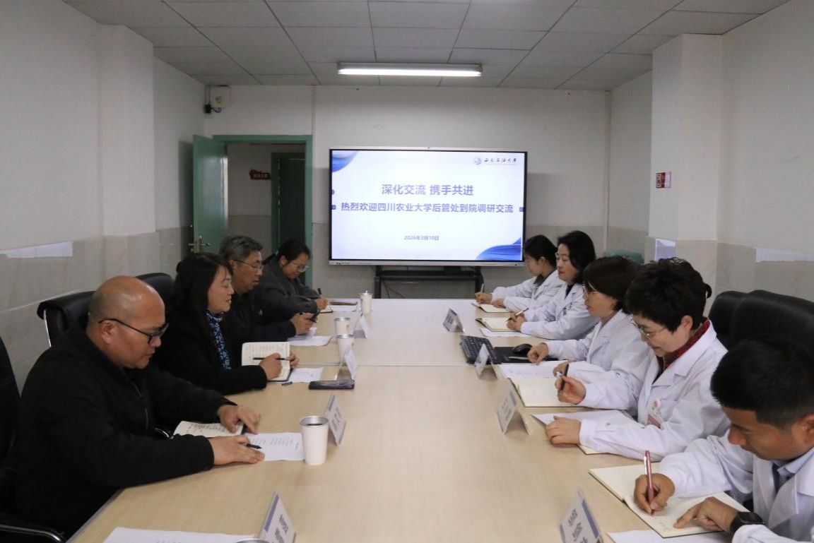 3月10日,四川农业大学校医院负责人、后勤管理处处长陈东一行5人来我校医院调研交流。校医院院长张继红向客人介绍了我校医院的基本情况、组织架构、人员配备及近年来建设发展的总体思路,重点介绍了校医院的职能、工作模式与取得的成效。随后双方围绕新时期高校医院的功能定位、发展面临的机遇与挑战、拓展医疗服务项目、公共卫生体系建设、健康校园共建以及内部管理与激励机制等共同关心的话题,展开了广泛而深入的探讨和交流。双方均表示,此次调研为两校医院之间相互学习、经验分享提供了宝贵机会,希望今后进一步加强沟通与合作,共同探索高校医疗卫生事业高质量发展的有效途径,更好地保障师生健康,服务学校事业发展大局。