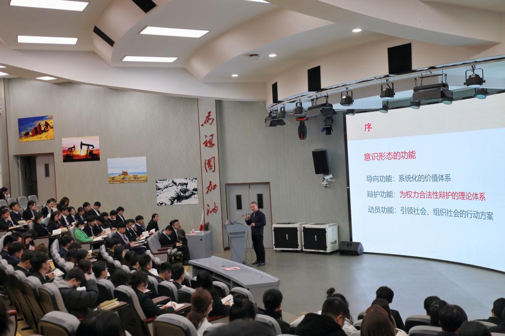 易联树以《学习贯彻党的二十大精神,建设具有强大凝聚力和引领力的社会主义意识形态》为题进行专题讲授,介绍了党的二十大报告的时代背景、重要意义和主要内容,重点围绕习近平总书记关于意识形态与网络安全的重要讲话精神,结合学生工作实际,用生动的案例和翔实的数据,详细讲解了意识形态由来的历史脉络,并结合当前意识形态的风险动向引导学生认识到意识形态是党的一项极端重要的工作,事关党的前途命运,事关国家长治久安。号召同学们深入学习党的二十大报告,真正把报告内容内化于心,外化于行,成为学习贯彻党的二十大精神的宣传者、践行者、示范者。