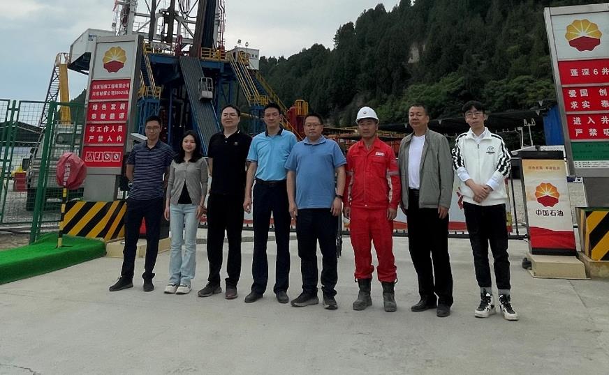 座谈会前,赖南君一行参观了盐亭工业园区及蓬深6井钻井现场。