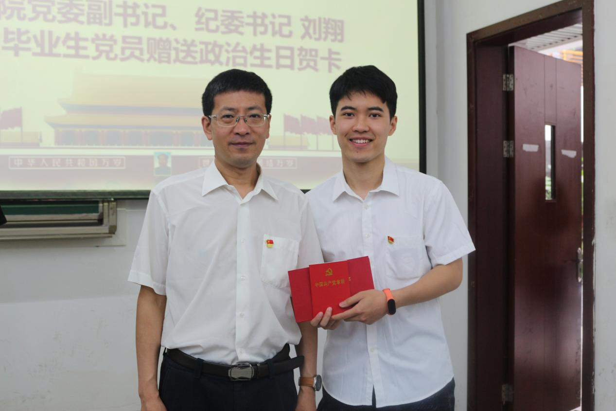 会上,全体党员齐唱《国际歌》,并在刘翔的带领下重温入党誓词。李涧松结合“明德笃志、博学创新”的校训和“为祖国加油,为民族争气”的大学精神,从“勤于学习,不断增强党性观念”“善于思考,时刻维护党的利益”“勇于实践,自觉争做时代的先锋”三个方面寄语毕业生党员,要始终坚定理想信念,不忘初心,砥砺前行。硕士毕业生党员康泽和本科毕业生党员韦邦浩代表毕业生党员进行了发言,倡议全体毕业生党员以优秀党员的标准要求自己,不辜负党组织和学校的帮助和教诲。参加活动的领导和老师们为全体毕业生党员逐一佩戴党徽、赠送党章和政治生日贺卡,用特殊的礼物表达了对毕业生党员的真挚祝福。
