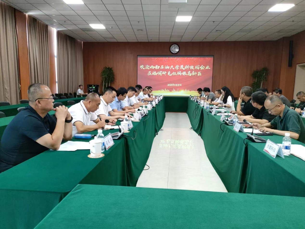 考察团由13人组成。克拉玛依高新区(白碱滩区)区委书记崔涛,区委常委、副区长沈豪,克拉玛依高新区科技局负责人和高新区内企业代表热情接待了科技园考察团。考察团参观了克拉玛依高新区科创孵化基地规划展示馆,详细了解了克拉玛依高新区经济社会发展情况。双方在克拉玛依高新区科创孵化基地开展交流座谈会。会上,科技园负责人就西南石油大学科技成果转化及科技园平台建设、园区产业、创新创业、企业培育及科技园入园企业情况作了介绍。入园企业分别就人工智能、复杂油藏提高采收率、油气勘探开发管控一体化智能技术、提高采收率、油气实验设备等进行推介,并与在场的高新区企业深入交流讨论。