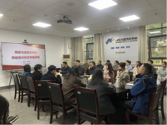 为深入学习贯彻习近平总书记关于网络强国的重要思想和意识形态工作的重要论述,筑牢网络意识形态安全防线,11月27日上午,网信中心在图书馆C315会议室举办网络意识形态专题讲座,培训特邀党委宣传部、新闻中心向发全老师作为主讲专家,中心全体职工参加了本次培训。