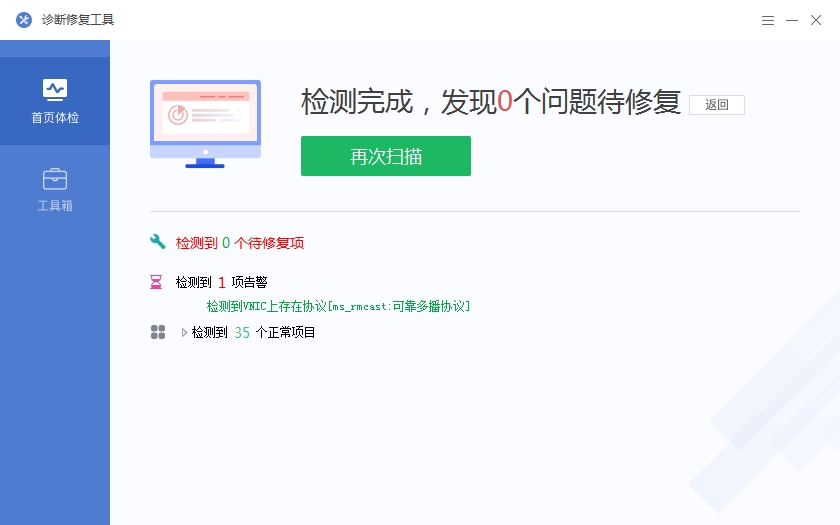 ,并一键修复存在的问题。