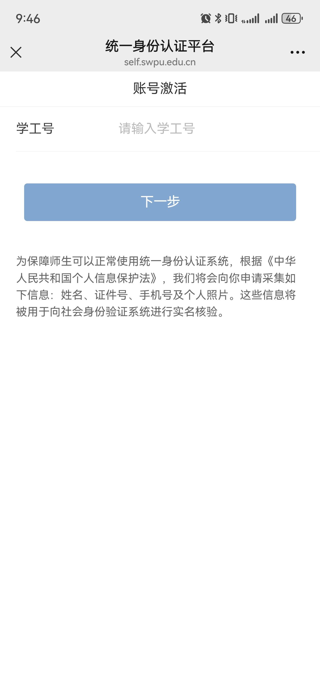 3.手机扫描后,在跳转的页面中输入学工号(未激活)