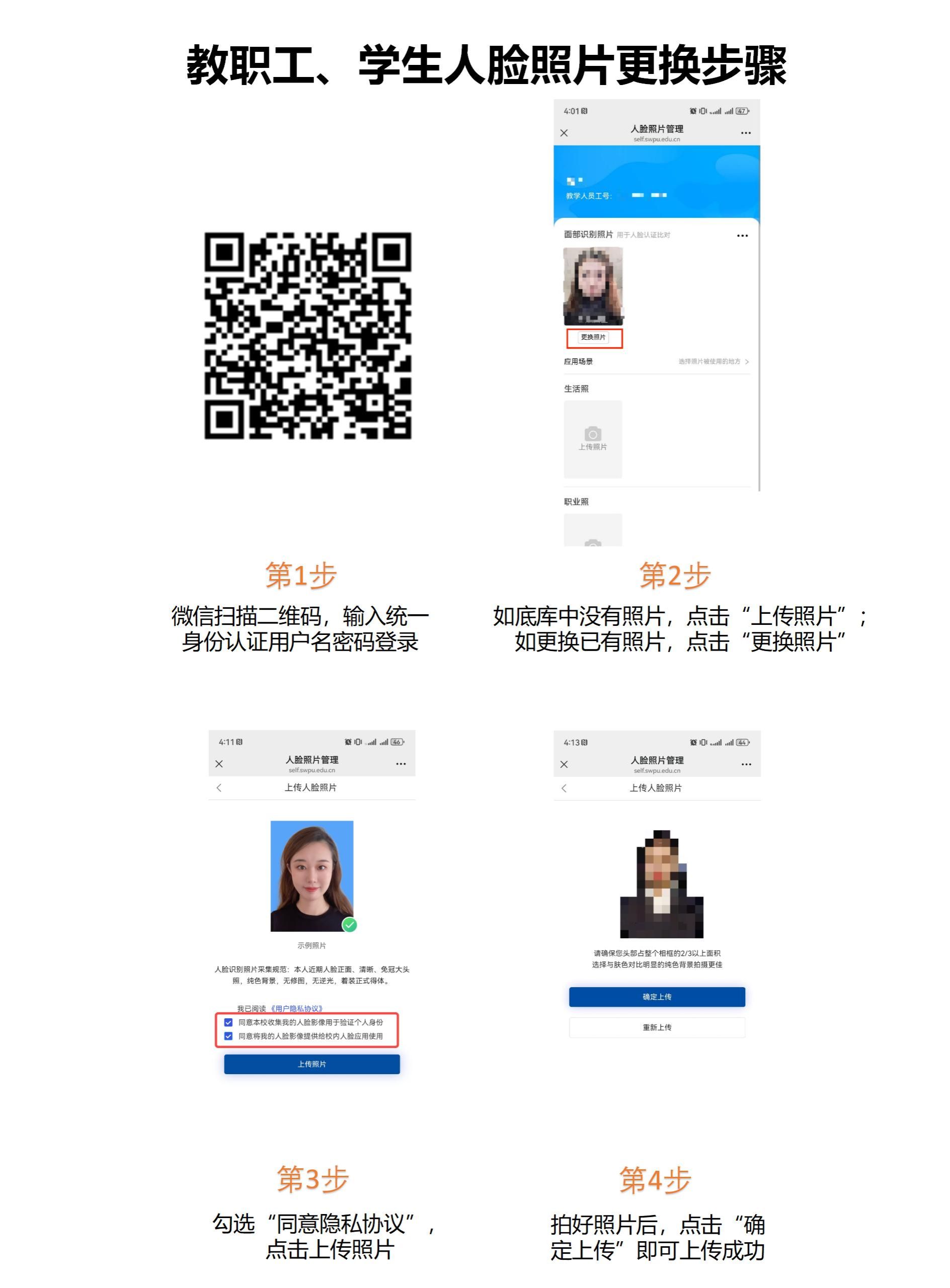 1.人脸识别相关数据更新采取完全自愿原则,进出校门支持刷卡、人脸识别等方式;