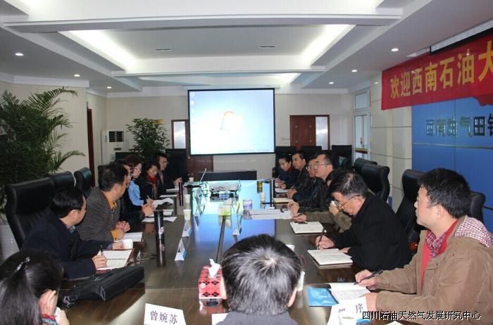 2014年11月18日下午两点半,四川石油天然气发展研究中心主任何沙率领由学术委员会常务副主任杨博文、中心执行副主任陈军华及中心研究所所长组成的调研团队到西南油气田销售分公司进行调研。西南油气田销售分公司副总经理朱小华,安全科、生产技术科人事科、财务科等相关人员参加了此次交流会。
