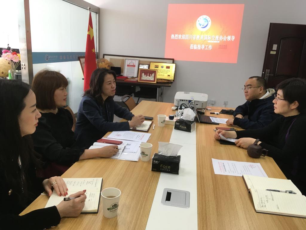 3月31日,四川省教育国际交流协会谢蓉副秘书长一行来校访问,针对我校加入协会会员事宜开展调研工作。国际处处长戴磊和副处长李小刚接待了谢蓉一行。