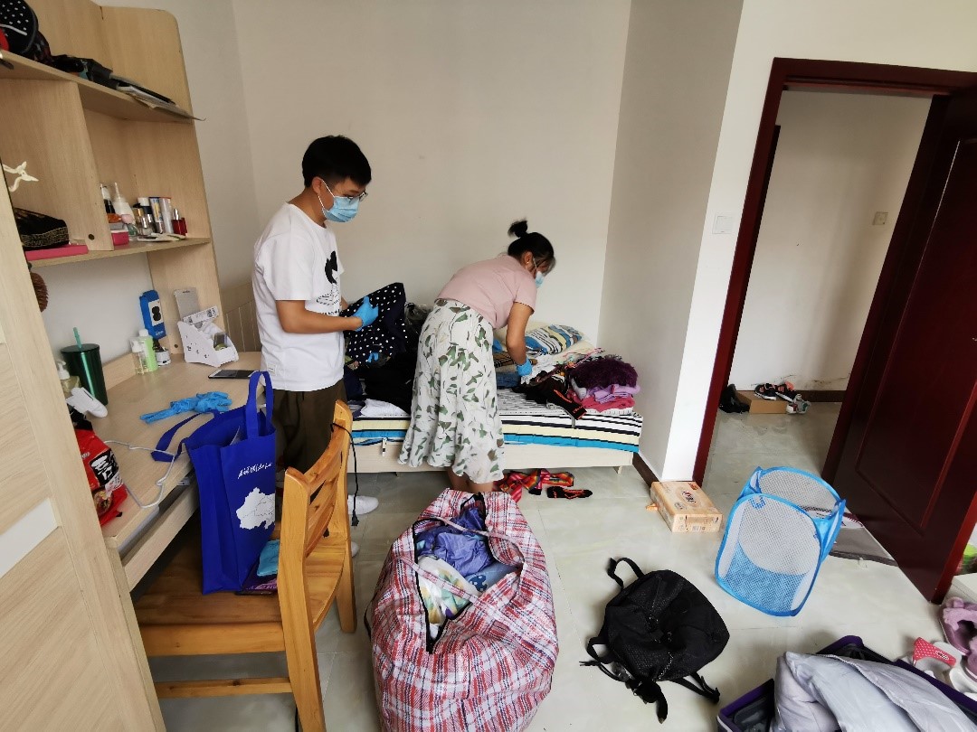 规范过程,落到实处。疫情防控工作要求下,为保障学生的生命及财产安全,在校学生离校前,须在网上离校系统完成相关手续,方可离校。未返校学生申请个人物品代领,须向国际处提交《西南石油大学语言进修生个人物品代理委托书》,国际处向学管中心交进入寝室的书面说明,并在国际处和学管中心的工作人员的陪同下,被委托人方可进入寝室打包行李。从进入寝室到离开寝室,老师们全程参与,全程监督,将各项工作做实做细。