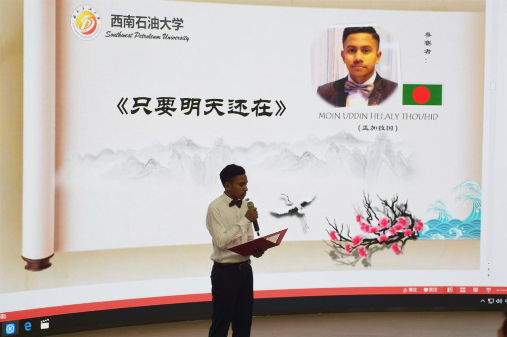 歌唱比赛环节,泰国学生“平平安安”组合以歌曲《我的秘密》将现场气氛引向高潮;加纳学生小山深情弹唱歌曲《知足》,嗓音醇厚、演唱优美流畅;赞比亚学生王力用歌曲《成都》表达了他对这座城市的热爱。最终,孟加拉学生乐山演唱的歌曲《十年》,真情表达了对同学、老师离别时的美好祝愿,并以纯正的发音、丰富的情感及较强的舞台音乐表现力获得本次歌唱比赛一等奖。