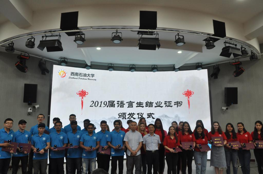 梦溪湖畔,清风送爽;飞翔路上,栀子飘香。6月20日晚,西南石油大学第二届汉语朗诵及歌唱比赛暨2019届语言生毕业典礼在思学楼C110隆重举行。学校党委常委、副校长张烈辉,四川省教育国际交流协会秘书长刁卫东等出席典礼,与国际学生共同度过了一个有梦想、有底蕴的汉语学习之夜,一个有温情、有祝福的毕业欢别之夜。