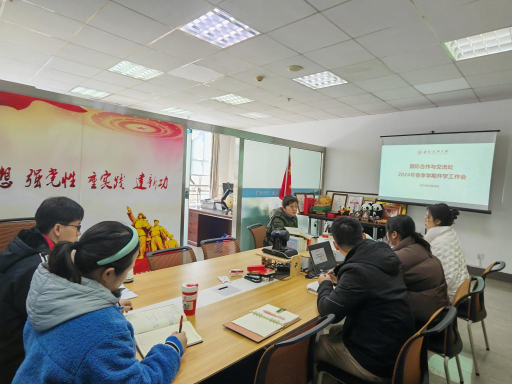 龙年启新程,春祺话愿景。为保障新学期开学工作稳定、有序、高效开展,2月29日上午,国际合作与交流处在图书馆C606会议室召开了2024年春季学期开学工作会议,会议由国际合作与交流处处长戴磊主持,部门全体工作人员参加会议。