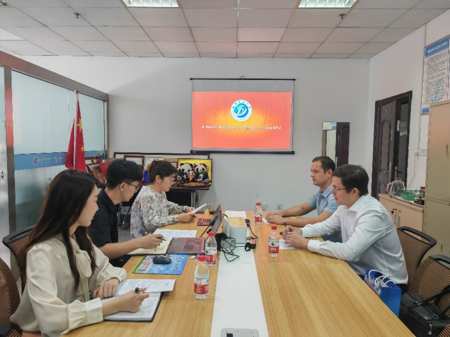 戴磊对Mikhail A. Varfolomeev博士一行的到来表示欢迎,简要介绍了西南石油大学的基本情况,并表示西南石油大学与喀山联邦大学一直以来合作紧密,希望今后能开展更加广泛的合作。