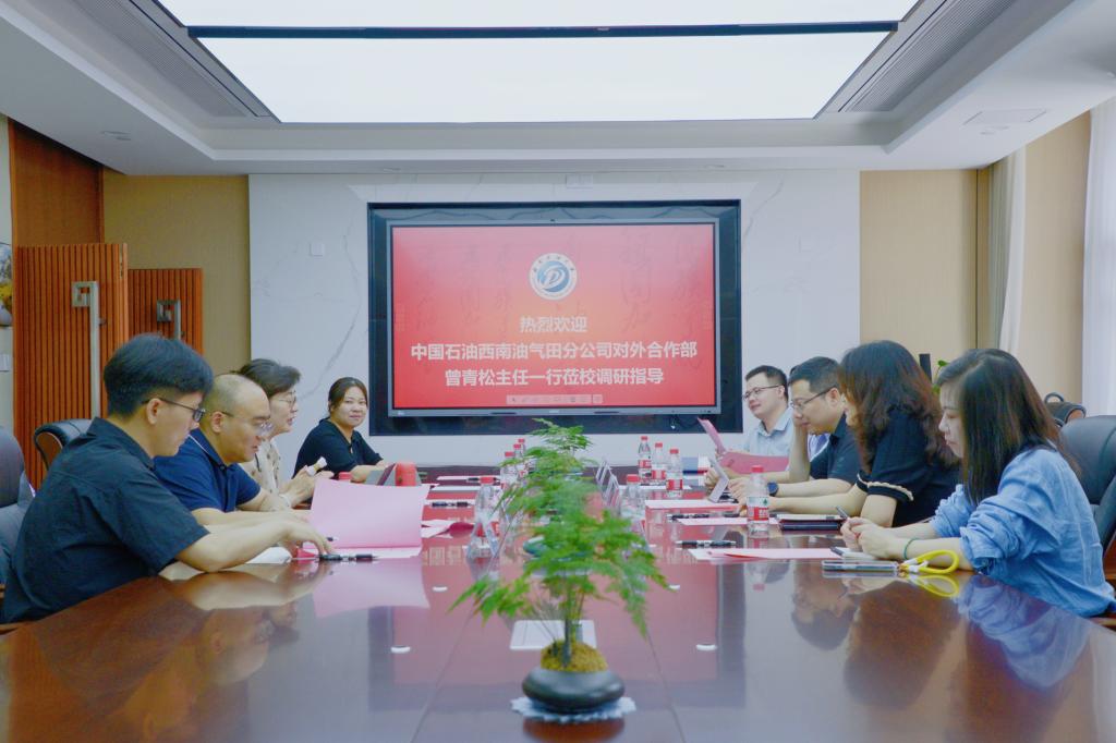 7月3日下午,中国石油西南油气田分公司对外合作部曾青松主任一行来校访问,与我校国际合作与交流处就校企合作、国际科学研究、国际会议举办等进行座谈交流。国际合作与交流处处长戴磊主持座谈。