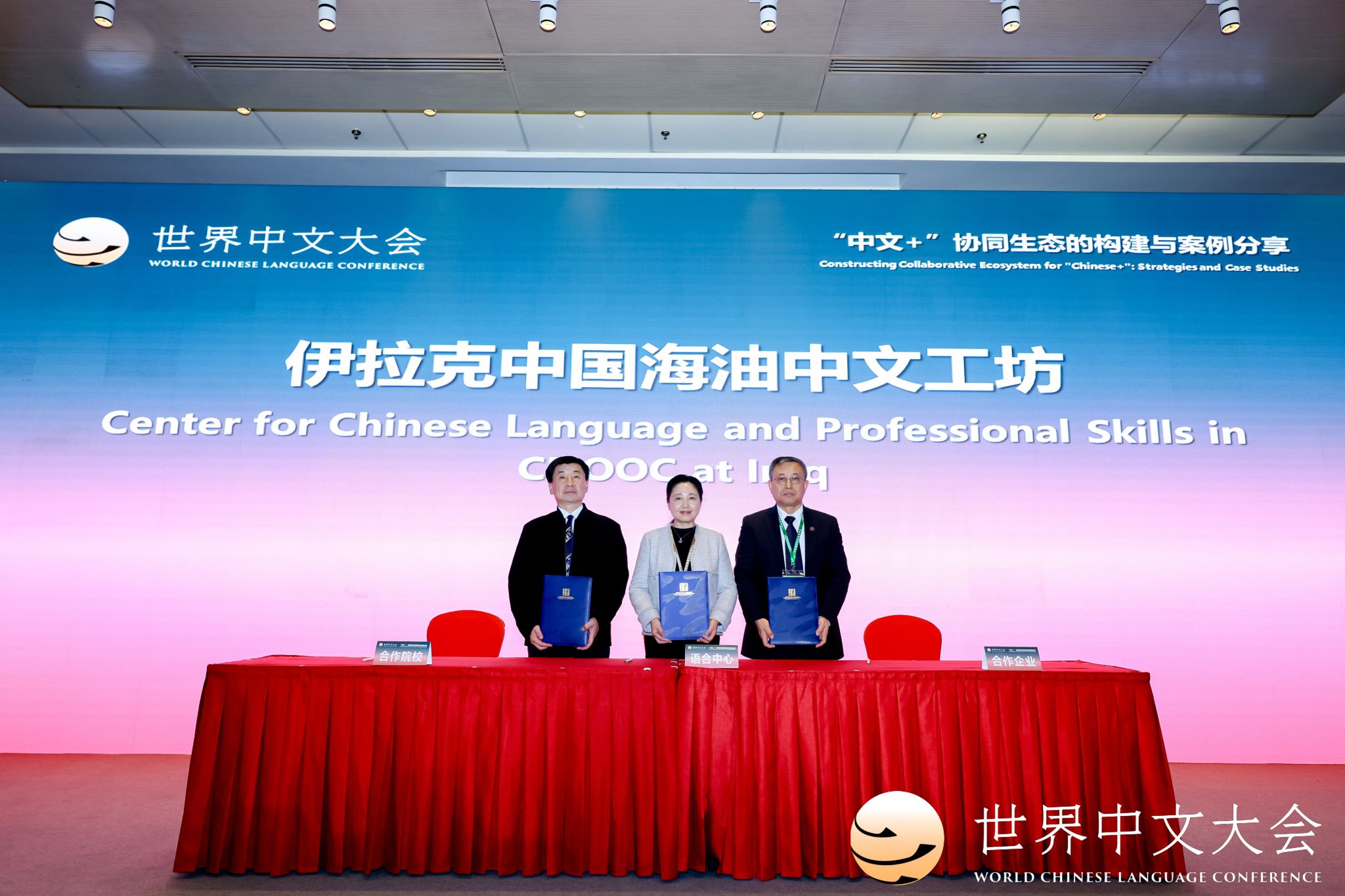 作为大会重要合作成果之一,中文工坊项目签约仪式备受关注,我校与中国海油伊拉克有限公司共同申报的“伊拉克中国海油中文工坊”成功入选,成为四个签约项目之一。中国海油伊拉克有限公司是中国海洋石油国际有限公司的下属境外全资子公司,主要负责在伊拉克地区的油气勘探与开发业务。此次三方共建的“伊拉克中国海油中文工坊”项目将落地伊拉克米桑油田,学校将充分发挥教育资源优势,定期选派优秀师资赴伊开展教学工作,以服务中海油本土员工为核心目标,重点突出油气行业特色,开发定制化教材与教学资源,构建“中文+油气专业”深度融合的教学体系,助力当地员工实现语言能力与职业技能的协同提升,为中海油海外本土化运营筑牢人才根基,同时搭建起中伊两国行业交流与民心相通的坚实桥梁。