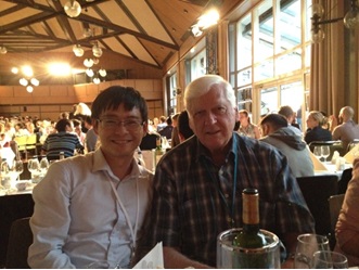 周莹(左)与诺贝尔生物化学奖得主Hamilton O.Smith教授(右)共进晚餐