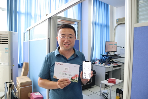 “收到这样时髦的贺卡,很感动,当老师真的很幸运很幸福。”9月10日下午,土测院教师潘海泽收到学生志愿者送来的节日贺卡时激动地说。
