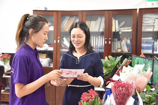 法学院辅导员平凯说:“今天是我入职后的第一个教师节,去年今天,我还在给我的老师送贺卡,今年今天就收到了学生给我的贺卡,这种感觉妙不可言”。