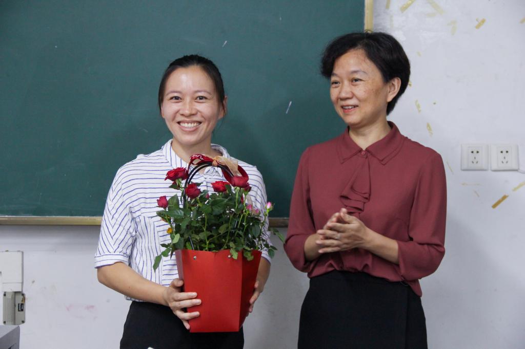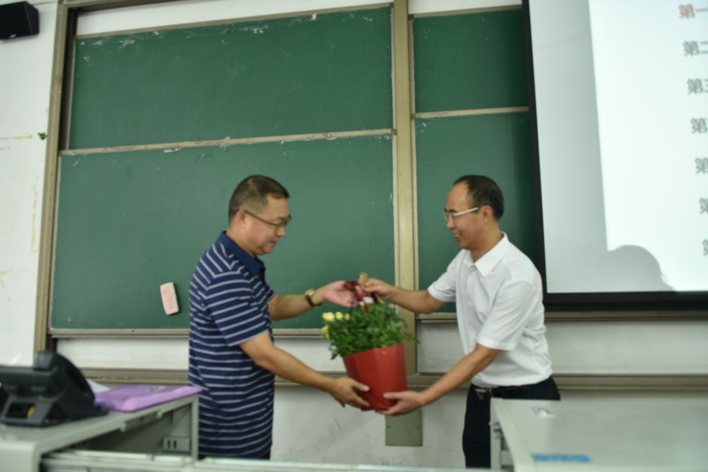 在明德楼教室,当党委常委、副校长张烈辉为《化工原理》授课教师刘瑾送上鲜花时,教室里的同学们齐声喝彩:“好!”全班响起热烈的掌声。