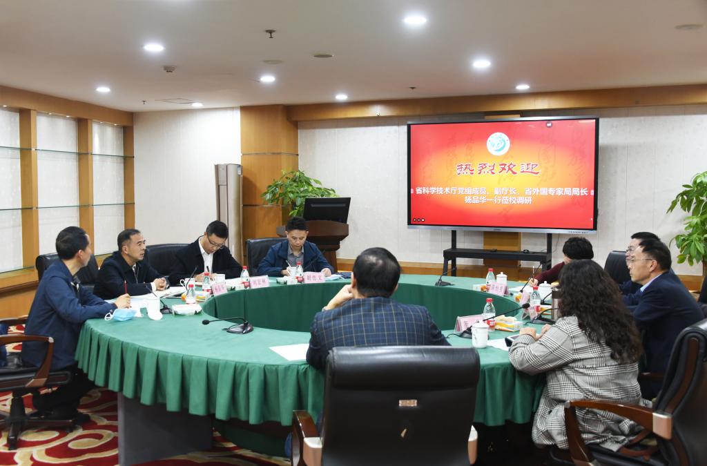 11月9日下午,省科学技术厅党组成员、副厅长,省外国专家局局长杨品华一行来校调研科技人才评价改革情况。校党委副书记、校长张烈辉,校党委副书记、校工会主席衡彤与杨品华一行进行了交流座谈。衡彤主持交流座谈会。