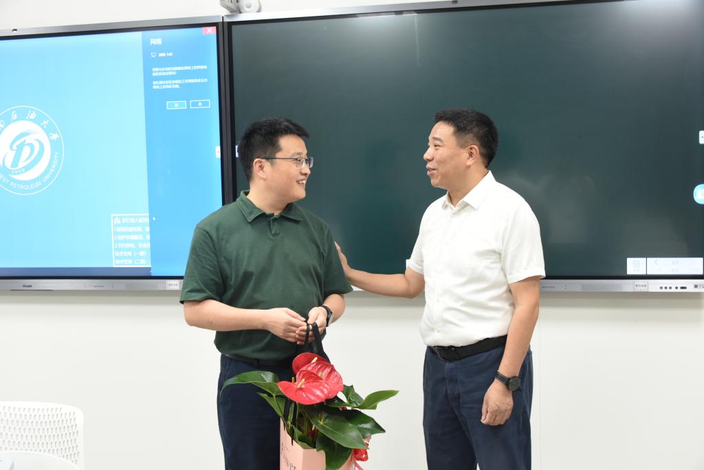 省纪委监委驻校纪检监察组组长、校党委副书记、纪委书记张明走进明志楼,给授课教师献上鲜花,送上祝福。并到辅导员办公室为辅导员送上鲜花,鼓励年轻教师做青年的知心人、热心人、引路人,在“教育青年、引导青年”上下功夫。