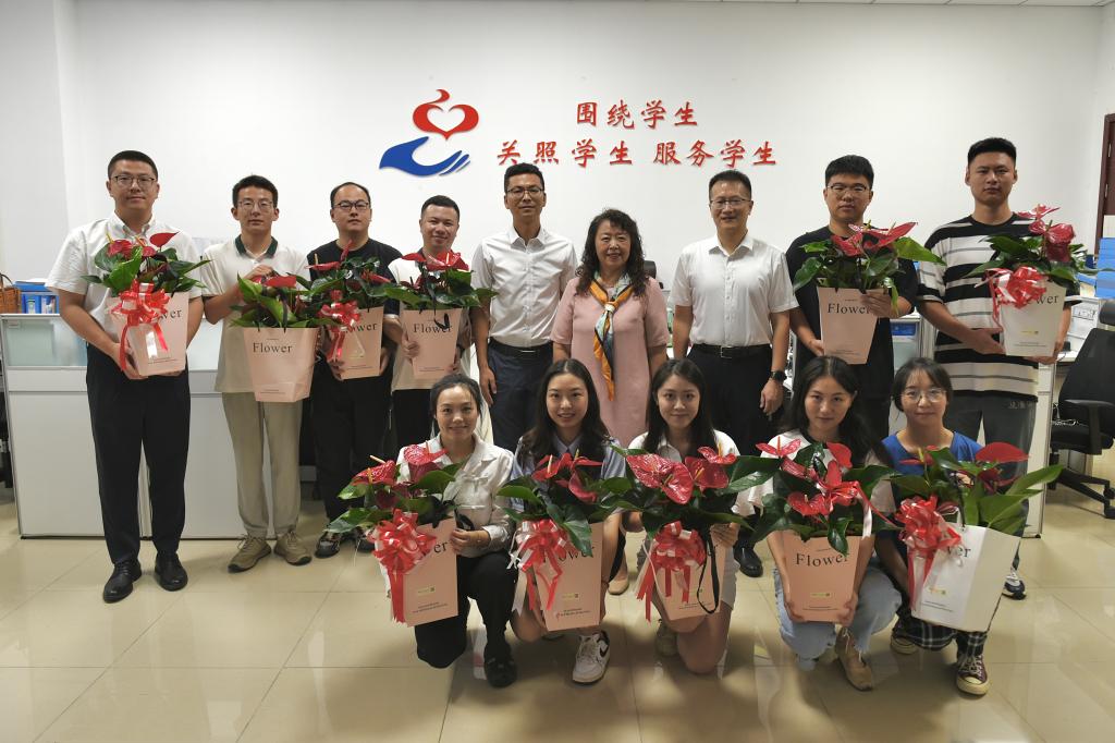 9月10日,在第40个教师节当天,全体在校校领导走进教学楼、辅导员办公室、实训基地,向辛勤工作在一线的教师代表和辅导员送去鲜花,表达节日问候与暖心祝愿。