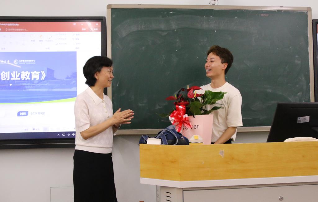 张烈辉给马克思主义学院万媛老师送上鲜花