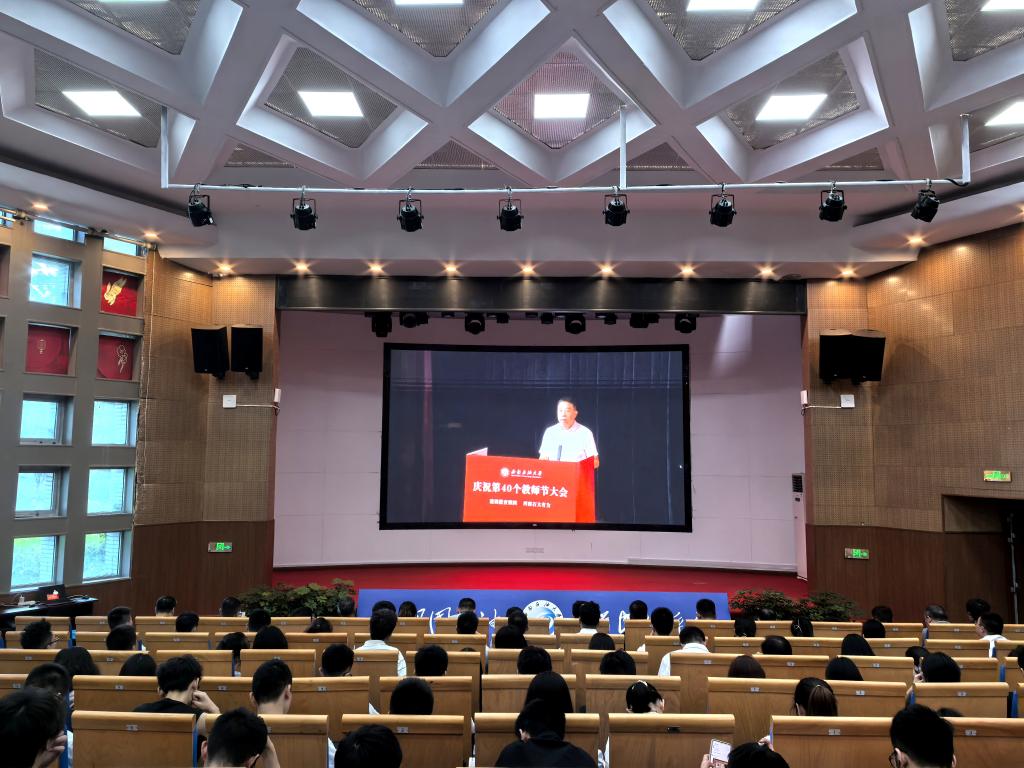 在第40个教师节到来之际,为大力弘扬教育家精神,营造校园尊师重教浓厚氛围,9月10日,我校召开庆祝第40个教师节大会,向全体教师致以节日祝福和崇高敬意。校领导张烈辉、郭建春、衡彤、张明、刘向君、祝效华、李德海、裴向军出席活动。党委常委、副校长刘向君主持大会。