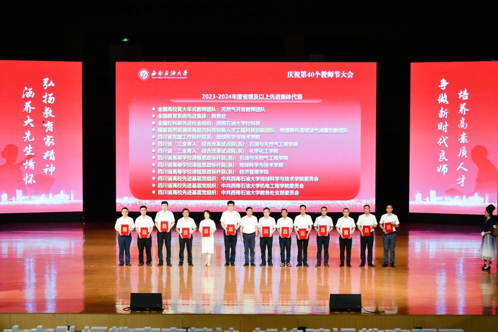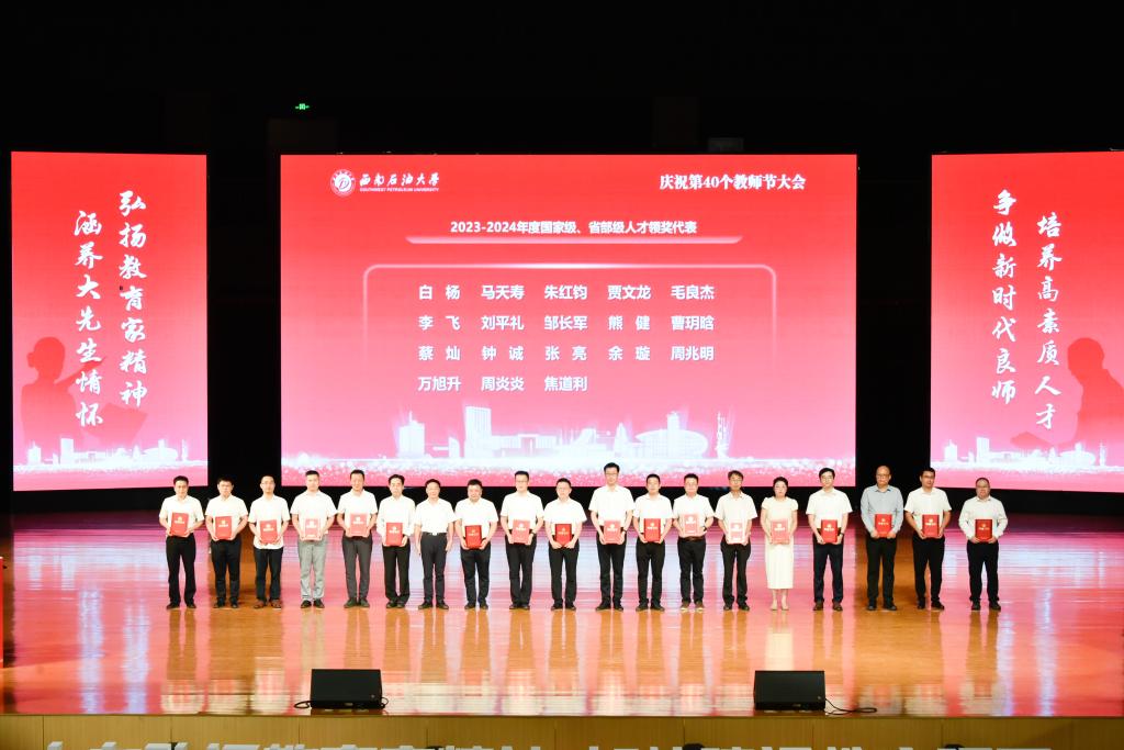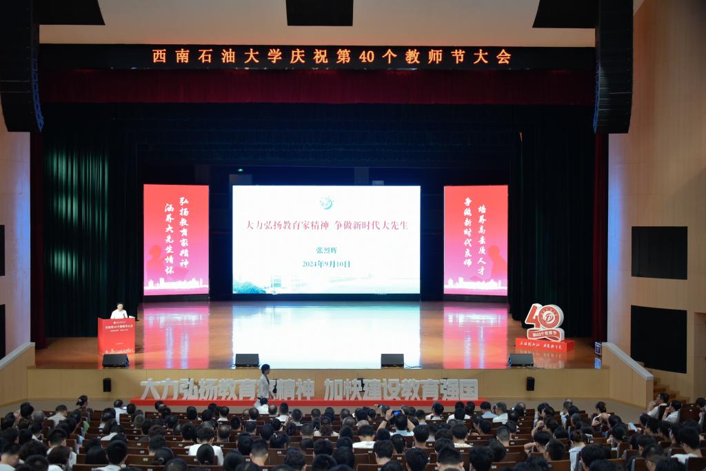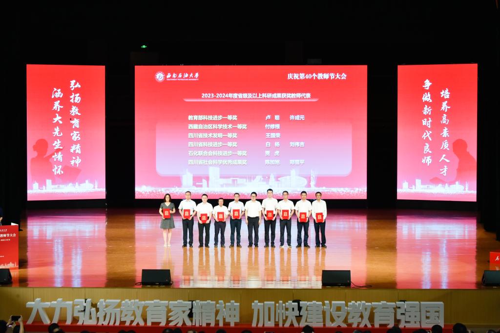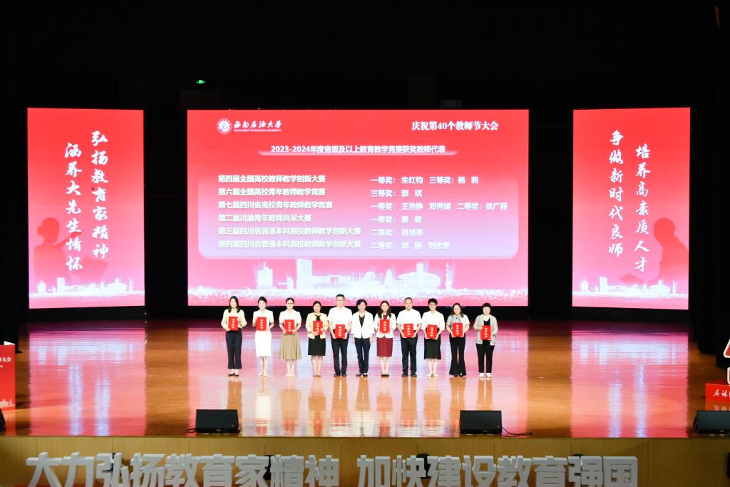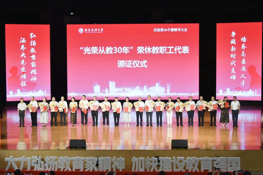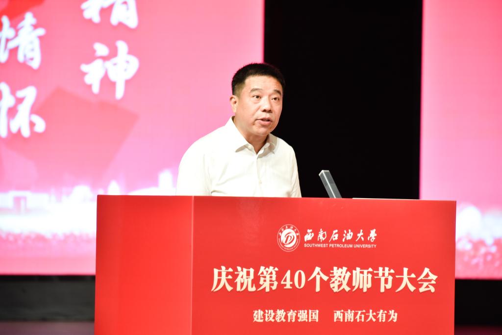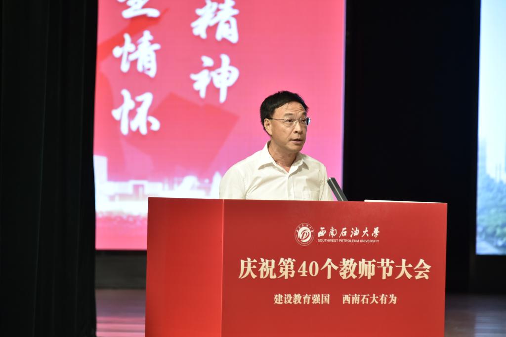 “光荣从教30年”荣休教职工代表、法学院秦扬老师分享了自己躬耕教坛36年宝贵的教学经历;获奖教师代表、四川省“四有”好老师荣誉称号获得者、电气信息学院王艳老师讲述了她积极投身教育教学事业的生动故事;新进教师代表、石油与天然气工程学院赵俊良老师展望了未来践行教育家精神的职业规划;学生代表、地球科学与技术学院郑超同学代表全体同学向老师们致谢师恩。