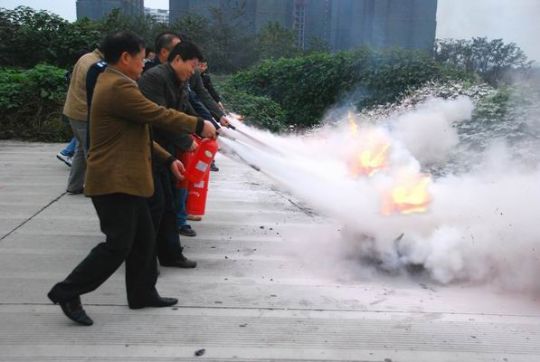 随后保卫处组织所有参加培训的人员在消防教员的指导下进行了灭火器使用实际演练,参加者人手一个灭火器,对模拟火灾进行了有效扑救。