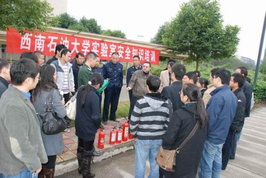 为配合我国第十九个消防日,我校2009年实验室安全教育及消防知识培训于11月12日下午16:30分在博学楼F101教室举行。设备与实验室管理处、保卫处共同组织了这次活动,成都校区的实验室工作人员以及部分高年级的研究生参加了培训。此次培训的目的是进一步提高实验室工作人员的安全意识,学会使用各类灭火器材,掌握扑灭初期火灾的基本技能。