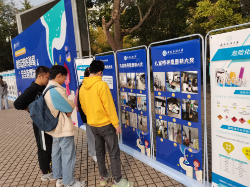 实验室是高校研究教学的重要场所。2022年11月10日,为加大实验室的安全宣传教育,增强全校师生的安全意识和自我防范能力,创建“平安校园”,学校实验室与设备管理处在博学广场举办了“做自己的实验室安全首席执行官”主题活动——实验室安全知识展。