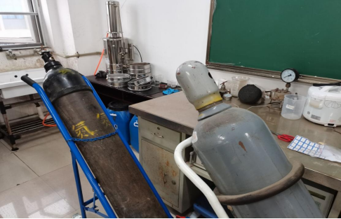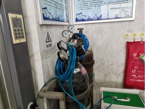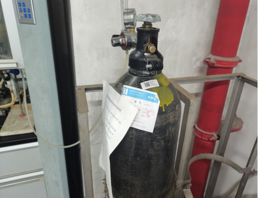 实验室存放的气瓶未挂状态牌 |