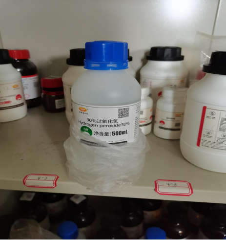 存放管制类危化品门开却无人值守(硝酸锶、双氧水),且药品柜未上锁。 |
