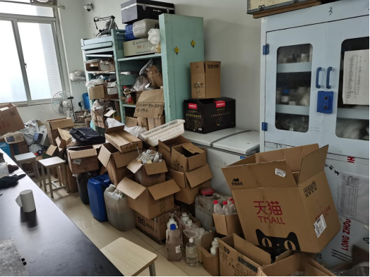 验室堆放大量纸箱,且摆放杂乱,占用太多实验室面积。 |