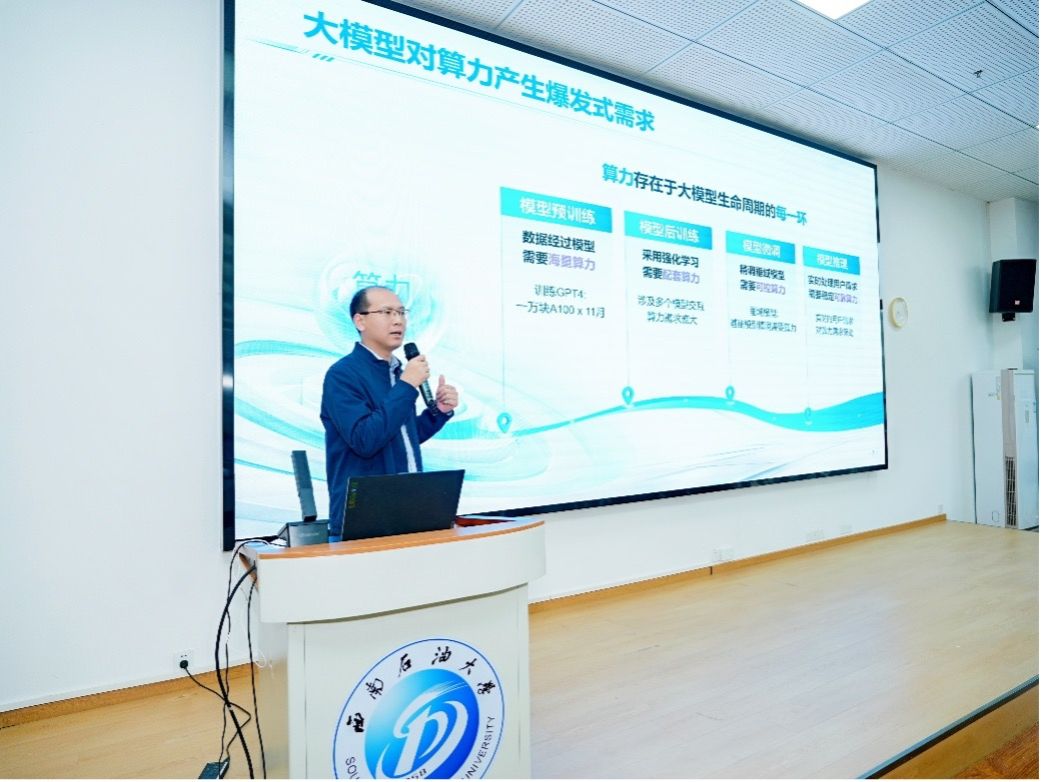 11月29日,“CCF高专委走进高校专家论坛——2025 AI大模型算力与应用论坛(成都站)”在我校创新创业与新能源研发中心(双创大楼)B205会议室隆重召开。本次论坛由中国计算机学会(CCF)高性能计算专业委员会(高专委)主办,西南石油大学承办。川内高校、科研院所及行业领先企业的专家学者与高专委的专家共同围绕AI大模型浪潮下的算力建设、核心技术突破与教育科研创新等议题展开深度研讨。四川地区80余位高校专家、学者及我校师生代表参加了此次学术盛会。