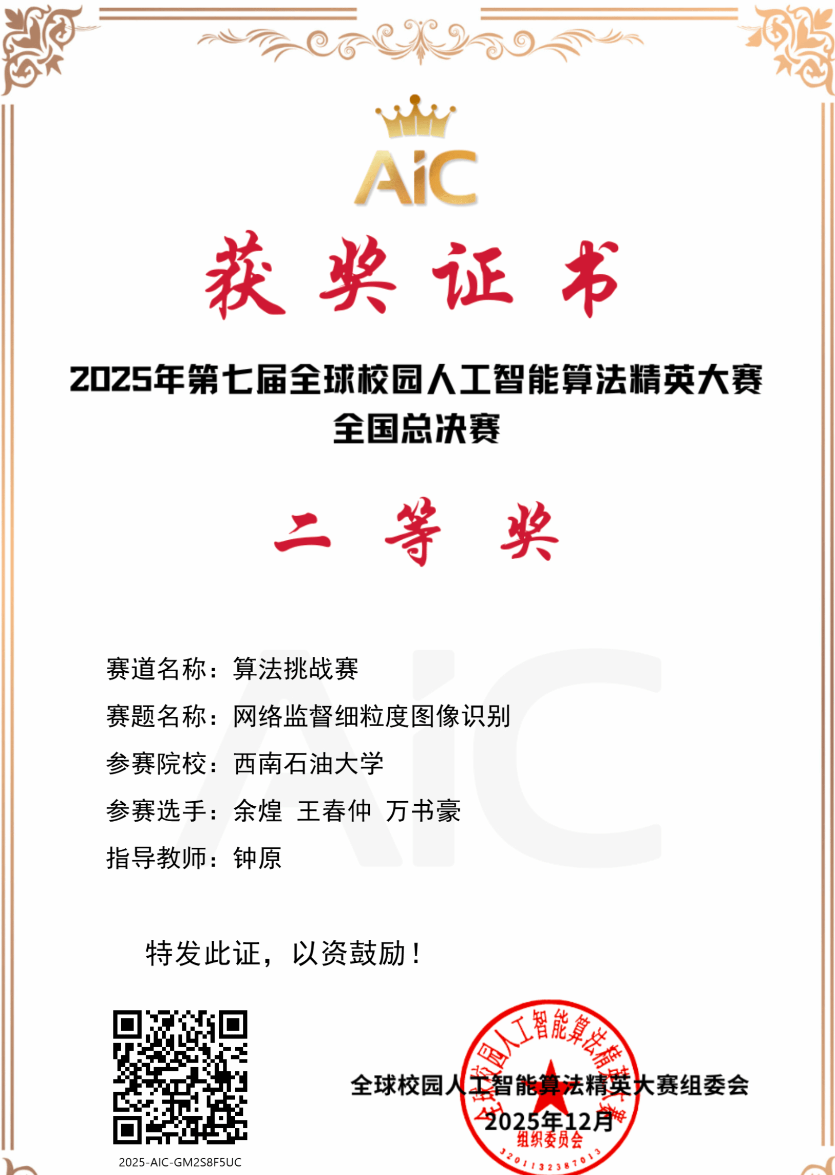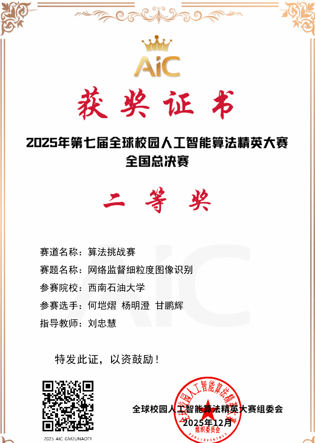 2025年12月6日至7日,全球校园人工智能算法精英赛全国总决赛路演在北京邮电大学举行。我院三支队伍在长达数月的赛程中表现优异,最终斩获全国一等奖一项(入围路演)、全国二等奖两项的佳绩。