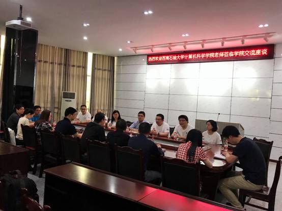 下午4:00,在西华师范大学计算机学院理科综合楼B402,龚院长一行和西华师范大学计算机学院党委书记王朝斌、党委副书记、纪委书记汪潜、副院长赖晓风、副院长潘伟以及学院主干老师进行了交流,双方就研究生招生培养,学科建设发展,人才引进,教师提升等问题进行了深入的探讨。会后,龚捷一行对西华师范大学有志报考我校的学生进行了现场讲解和答疑。
