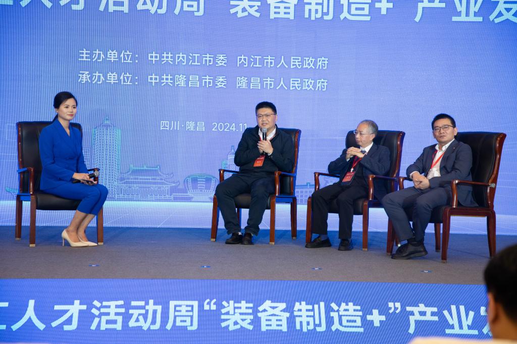 彭博(左二)在隆昌市“装备制造+”产业发展论坛上发言